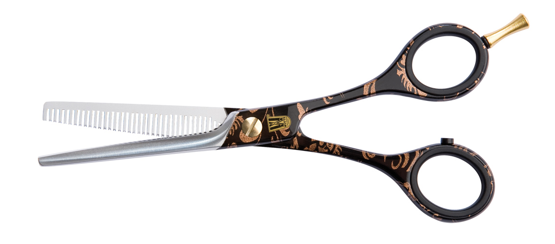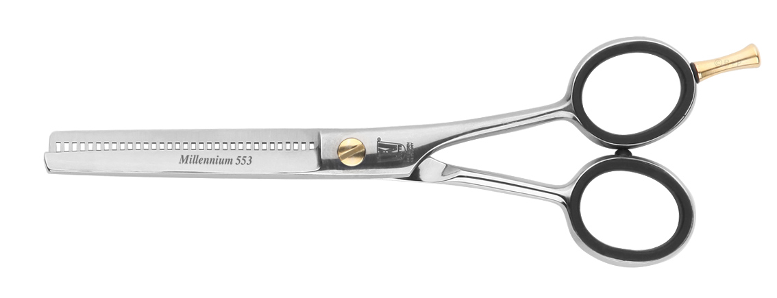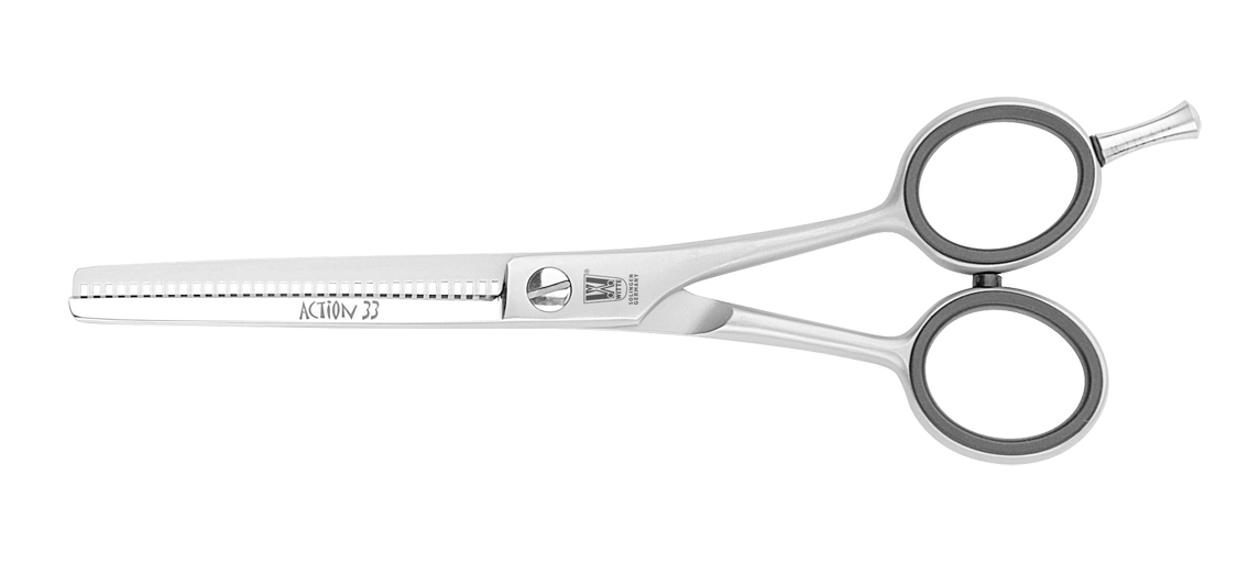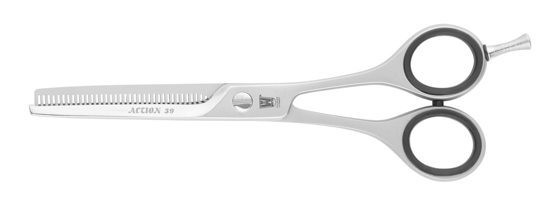 Der Geniestreich ist die exzentrische Lage der Schraube, die es ermöglicht eine Schneide um ca. 7% zu verlängern. Die lange Schneide entwickelt in Relation eine höhere Geschwindigkeit und erzeugt einen "ziehenden Schnitt”, der das Haar sanft zwischen die Schneiden bewegt.